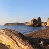 Прочида в Италии. Вдоль побережья идут скалы - достаточно высокие, но не настолько чтобы подавлять собою все вокруг. Соответственно, большинство отелей находятся как бы на горе, - вид хороший, но к морю надо спускаться по лестнице. В воде прямо возле берега находятся две высокие скалы причудливой формы. Берег и дно: песок.