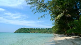острова Ко-Куд в Тайланде. Тропический пейзаж с пальмами и отели проверенные временем привлекают сюда много пакетных туристов. Кроме того это лучшее место на острове, чтобы встречать закат. Песчаная коса на севере пляжа эффектно смотрится с воздуха и подходит тем, кто любит поплескаться на мелководье. Берег и дно: песок.